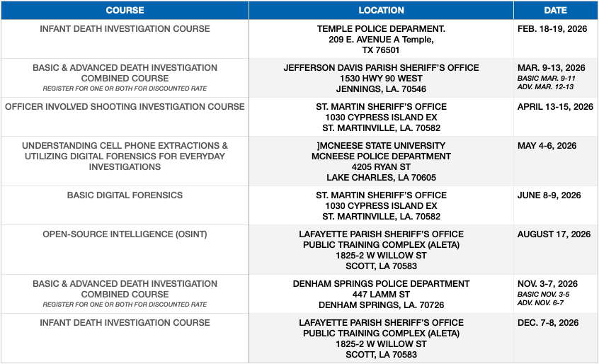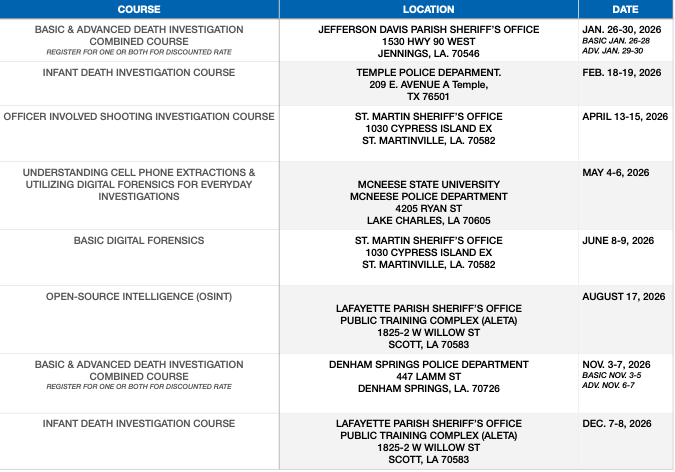 Each course we teach is designed to elevate professional standards and strengthen investigative capabilities across the Gulf Coast region and beyond.